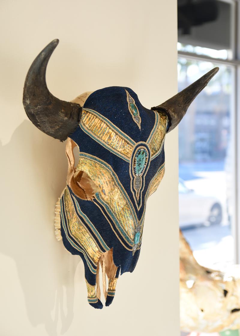 Mixed media on skull 22.5 x 21 x 8.5 in 58 x 53 x 23 cm